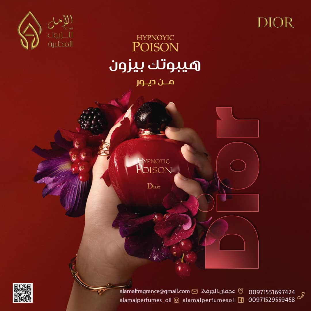 Hypnotic Poison Dior عطر شرقي - فانيليا للنساء . Hypnotic Poison صدر عام 1998. Hypnotic Poison من توقيع Annick Menardo و Christian Dussoulier. إفتتاحية العطر جوز الهند, البرقوق و المشمش; قلب العطر خشب الورد البرازيلي, الياسمين, الكاراوية, مسك الروم, الورد و زنابق الوادي; قاعدة العطر تتكون من الفانيليا, اللوز, خشب الصندل و المسك.